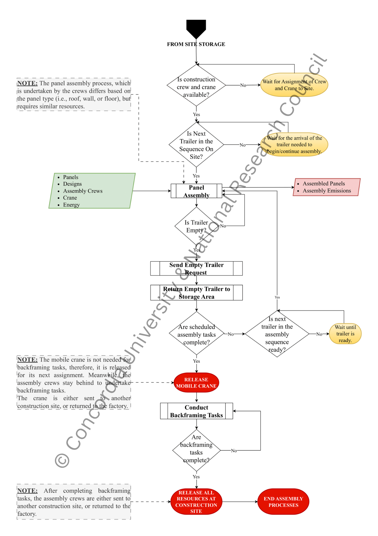 During the onsite assembly phase, the construction crews assemble the panels into a usable space supported primarily by mobile cranes and other equipment.